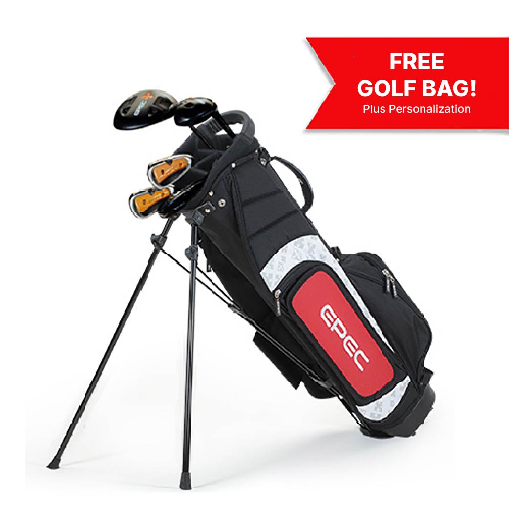 The EPEC 5 club set is our entry level offering where the set includes both a driver and utility wood as well as a mid-iron (7) and short-iron (PW).  This set also includes a golf bag with our innovative interchangeable side panels that come in 4 different colors.  One panel can even be silk screened with your son or daughters name or nickname for a small upcharge.